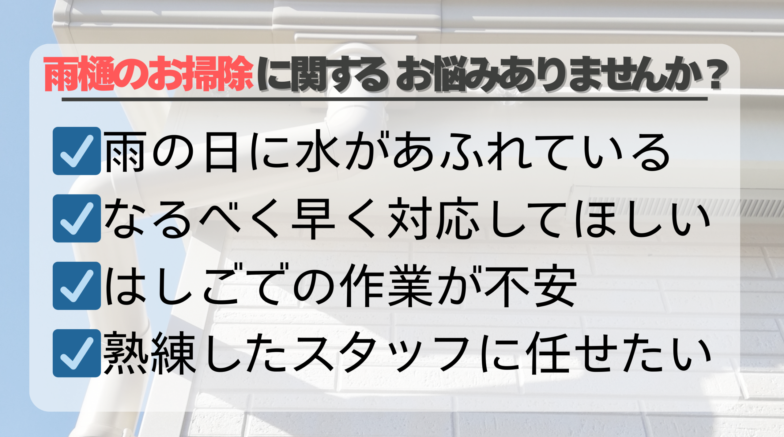 そんな「雨樋の詰まり・あふれ」は私たちにお任せください。